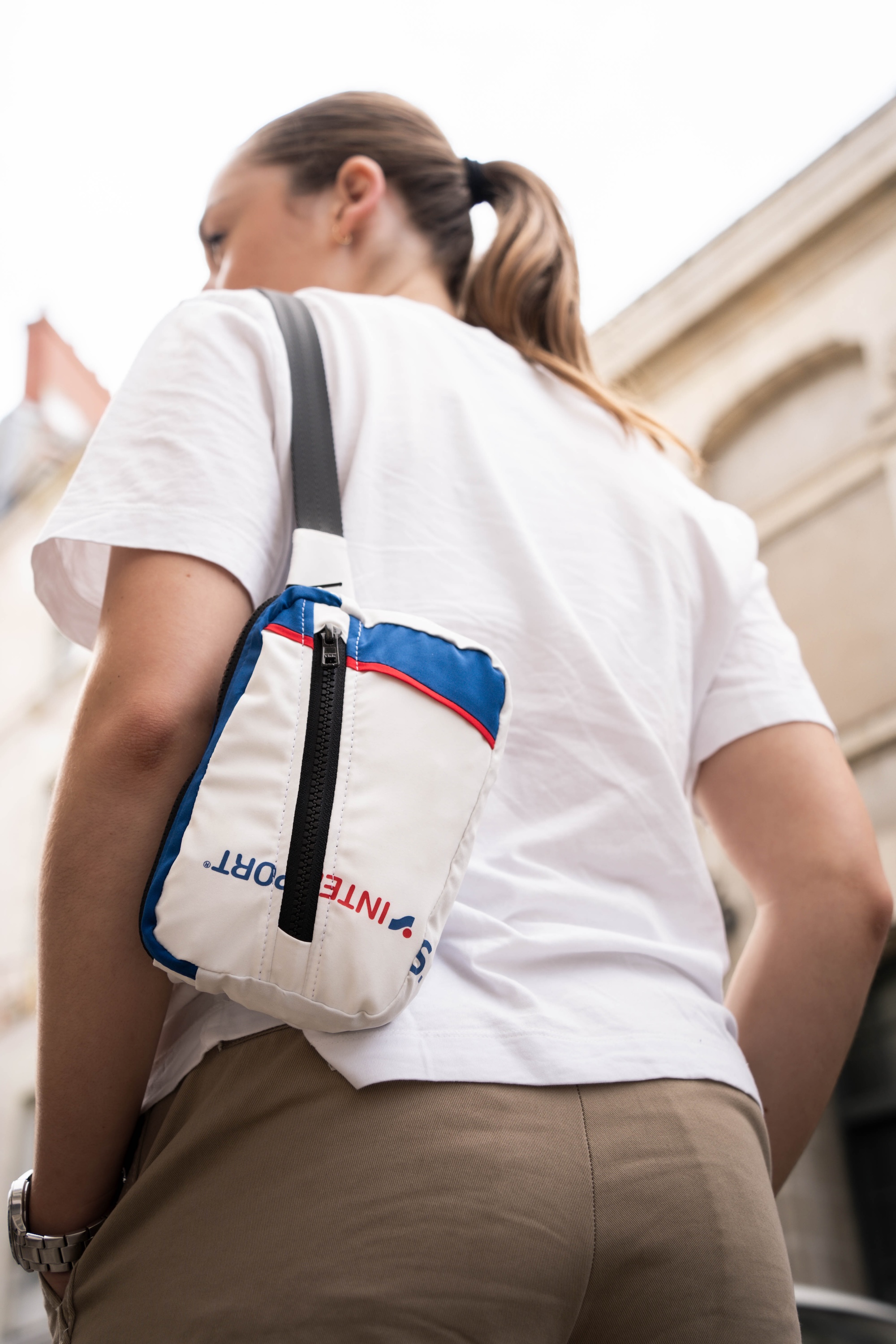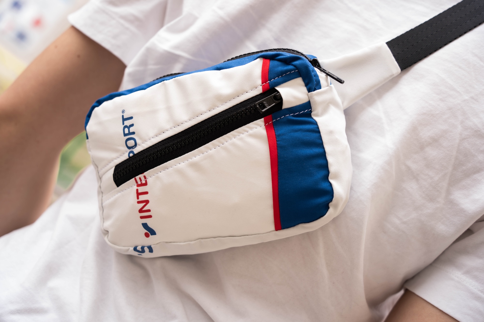 Intersport staff uniforms are regularly updated to maintain a fresh brand image in-store. Instead of viewing these used textiles as waste, the challenge was to repurpose this branded material into functional, high-quality, and desirable products : one cap, one hip pack and one shoe bag.